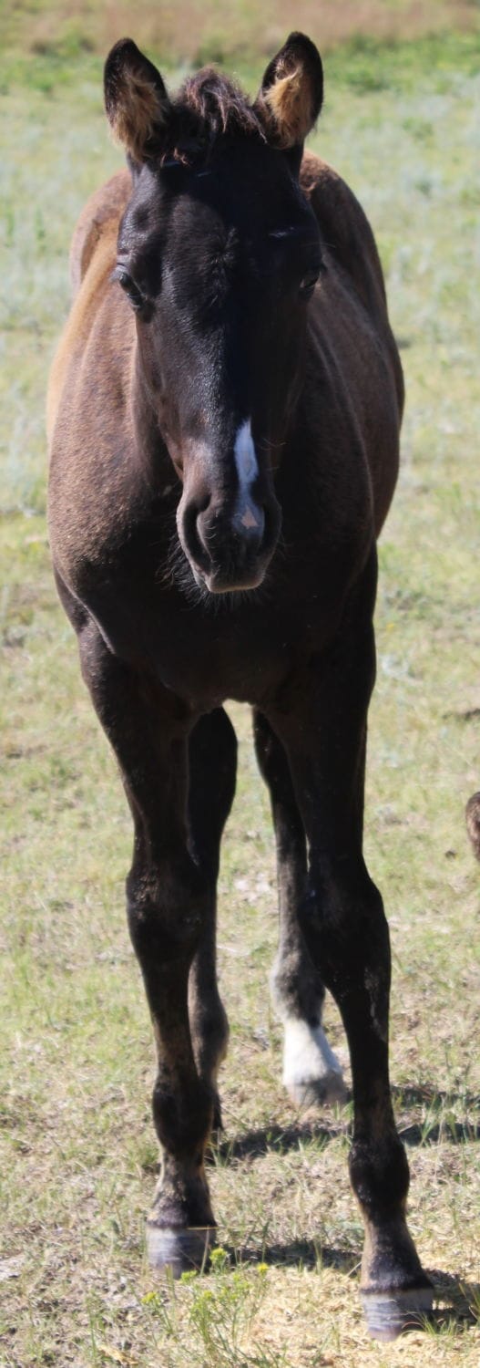 Johnny is another good looking gelding that has the talent and brains and ability to do a lot! A maternal grandson of Blue Spark Olena, this colt is a smart colt that is ready to learn and do. He had a little ground work this winter and is one who is shy but wants to please. Johnny is not real straight on his front legs, but has never shown an ounce of trouble with them and he’s a nice mover. This makes him a steal of a deal @ $2000. Someone will have a fun ride with him and a loyal mount. Johnny is bred up cow! He fades to brown in the summer.
