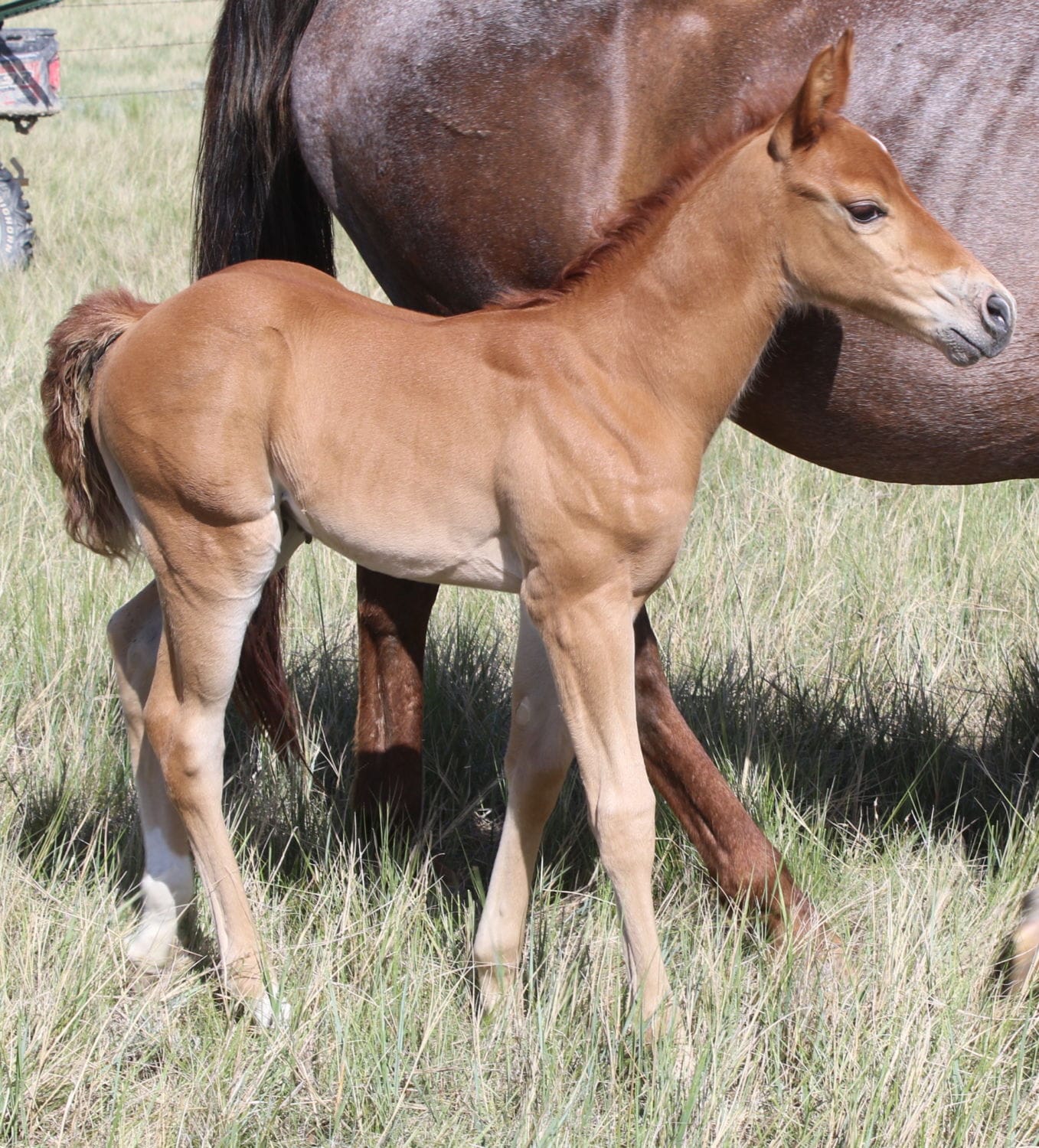 This foal will be a standout because they always are from this cross. This is an incredible old mare and proven producer. This colt will be absolutely fantastic. He was the best of the class for halter breaking and they are all good! He is a full brother to the incredible blue roan stallion prospect we have for sale and one of our top young mares. We really like these colts.