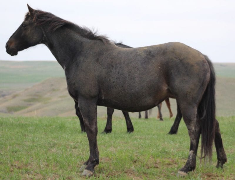 Breezy is a special mare that we’ve loved since she was a weaned baby in the corral. Tienna rode her in the 4-H horse program and we used her a little on the ranch. Sweet disposition, pretty head, ability to cover country well. Breezy is a using type of horse that we could ride as little or as much as we wanted and she was good. We have plenty of ride horses so are letting her raise babies. Breezy is about 15 hands. Her full brother is 15-3 so there is growth potential in her offspring. GBED N/N, Herda N/N, HYPP N/N, PSSM1 N/PSSM1, MH N/N