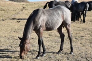 Breezy is a special mare that we’ve loved since she was a weaned baby in the corral. Tienna rode her in the 4-H horse program and we used her a little on the ranch. Sweet disposition, pretty head, ability to cover country well. Breezy is a using type of horse that we could ride as little or as much as we wanted and she was good. We have plenty of ride horses so are letting her raise babies. Breezy is about 15 hands. Her full brother is 15-3 so there is growth potential in her offspring. GBED N/N, Herda N/N, HYPP N/N, PSSM1 N/PSSM1, MH N/N