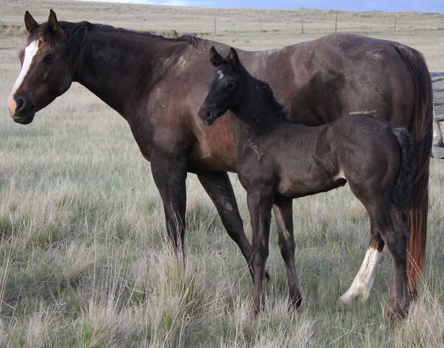 Lady is purely beautiful in so many ways. Her foals have such pliable, happy dispositions. Lady, herself, is conformationally all you could ask for; balanced, solid, correct. They grow out to be good sized horses. Lady is 15.1 hands. She does have sun issue on her nose. We have a blue roan daughter (MRI Blue Ladybug) in our mare band.