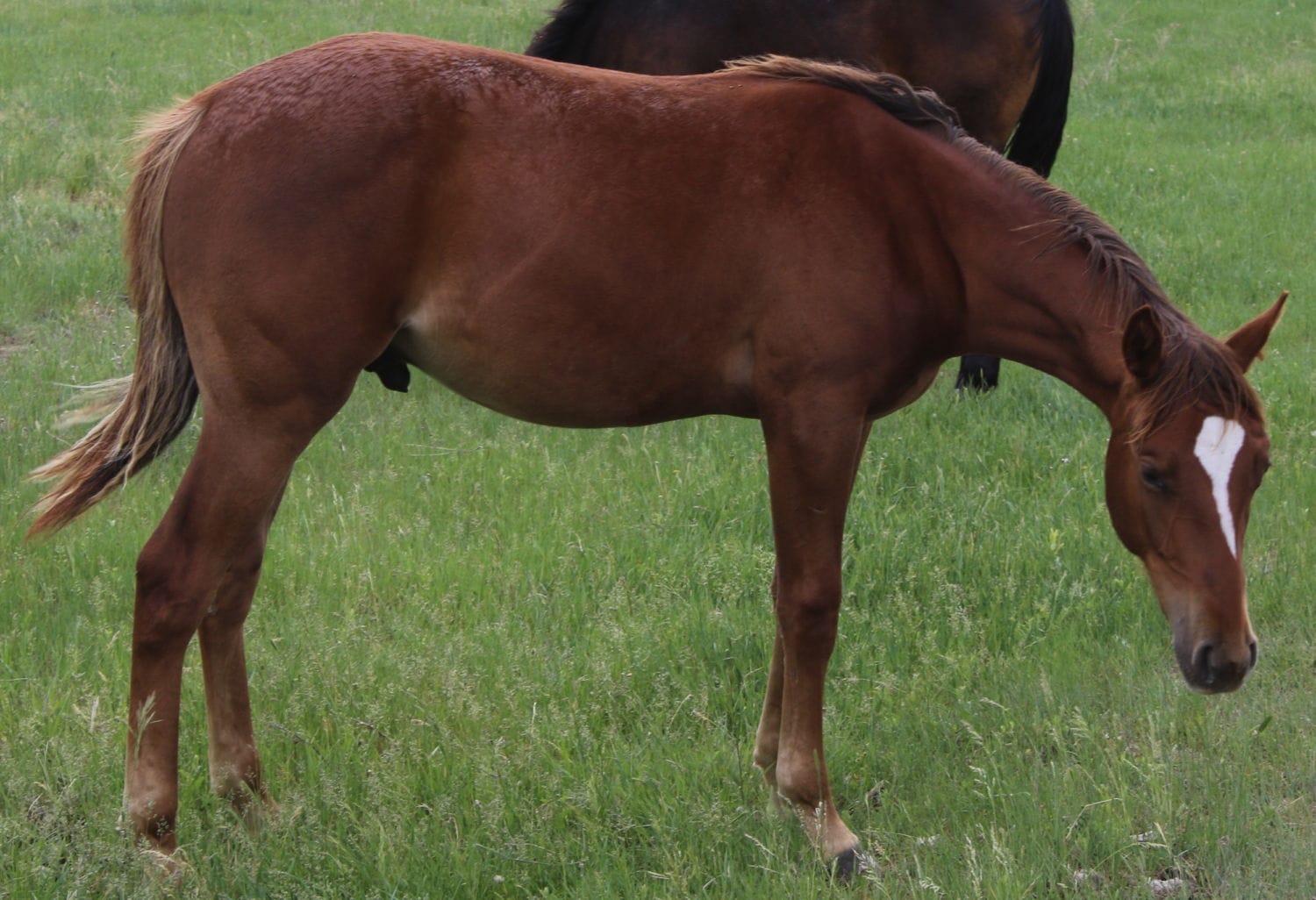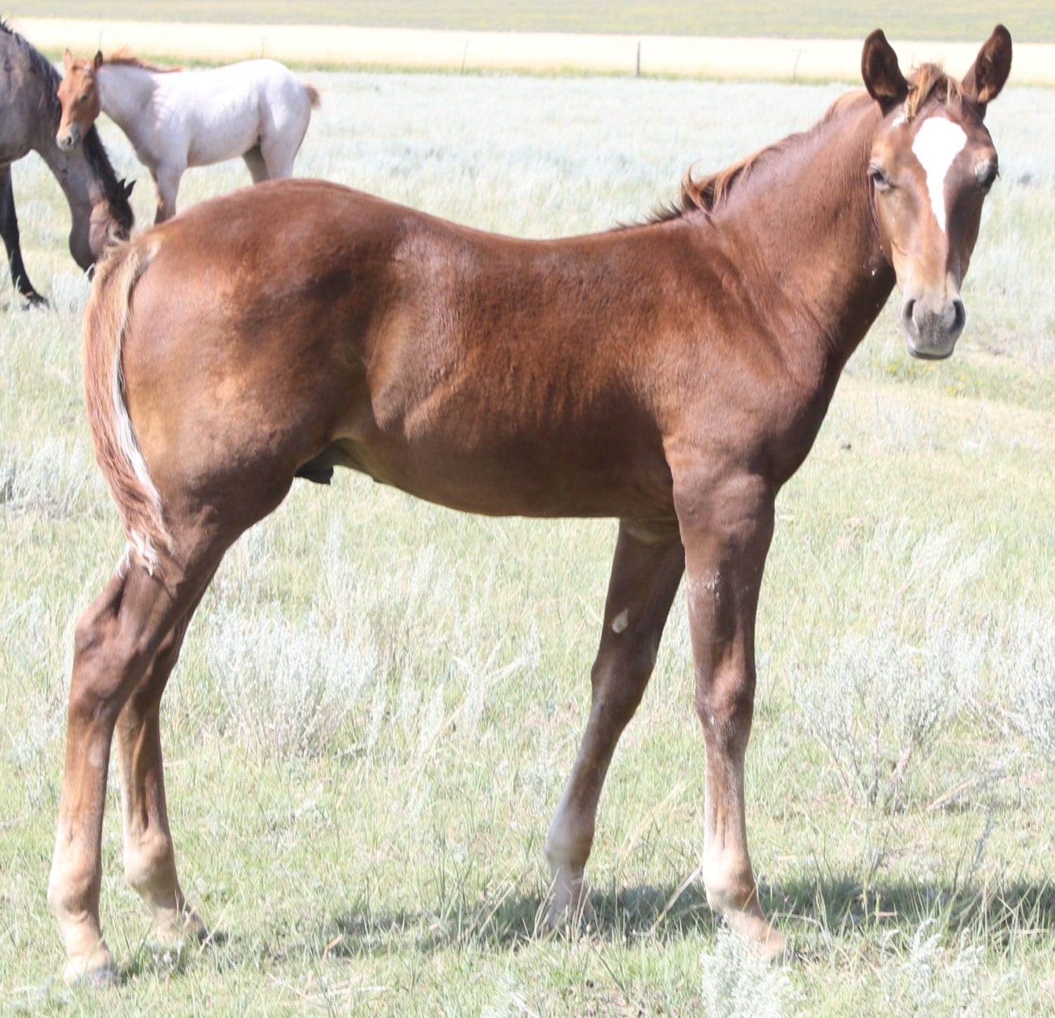 This colt was probably my favorite of the bunch as a weanling. He is built how I like them. Balanced refinement. Rain is a sweet, beautiful mare who models what we strive to raise and floats over the ground. We have a full sister in our broodmare band. We donated the 2018 full sibling to the AQHA Youth Program so you know they have good minds.