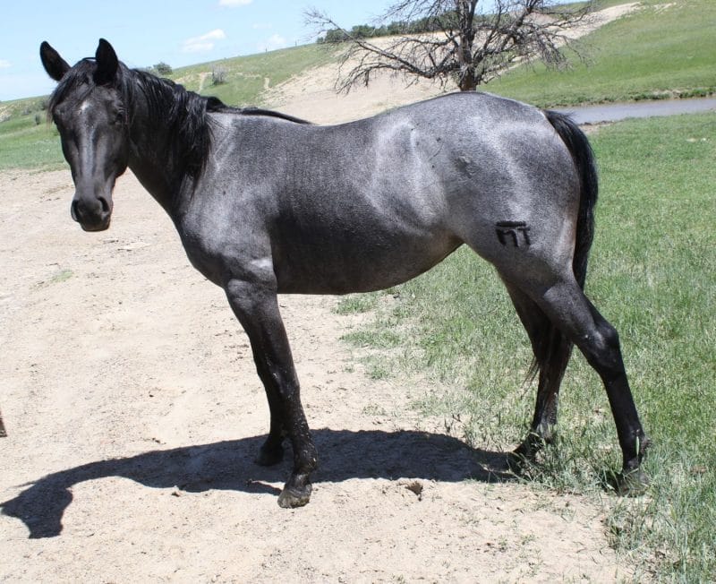 Rain is a big, ideal type black mare with a floating stride and a friendly personality. She is a consistent producer of top notch horses with color, kindness, brains, and beautiful conformation. Prayin is very blue with very light brown in flanks and nose. This is a guaranteed top filly! She is friendly, feminine, and correct. Her 2016 full sister for our program and her 2018 full sister was donated to the AQHA youth program. Prayin does have a scar on her left front foot from a cut when she was about a yearling. It is completely healed and she travels fine. Pictures of foot taken Feb. 2020.