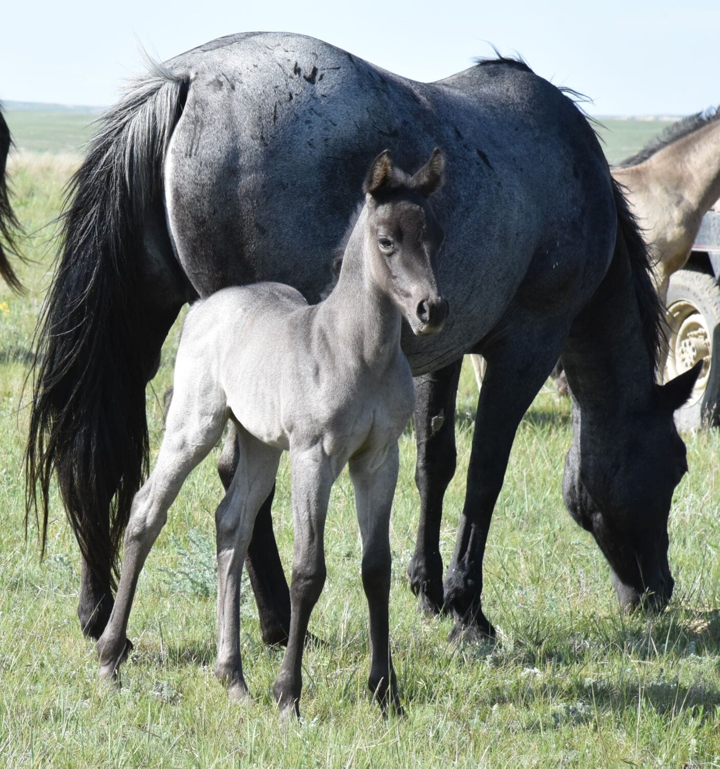 We finally have a blue roan filly from this cross and she is perfection! So so pretty. Born silvery blue. She has full brothers standing at stud in other states and a full sister in our mare band. We have her 2021 full brother, MRI ColonelSparkLena, for sale if you want to make babies like this.